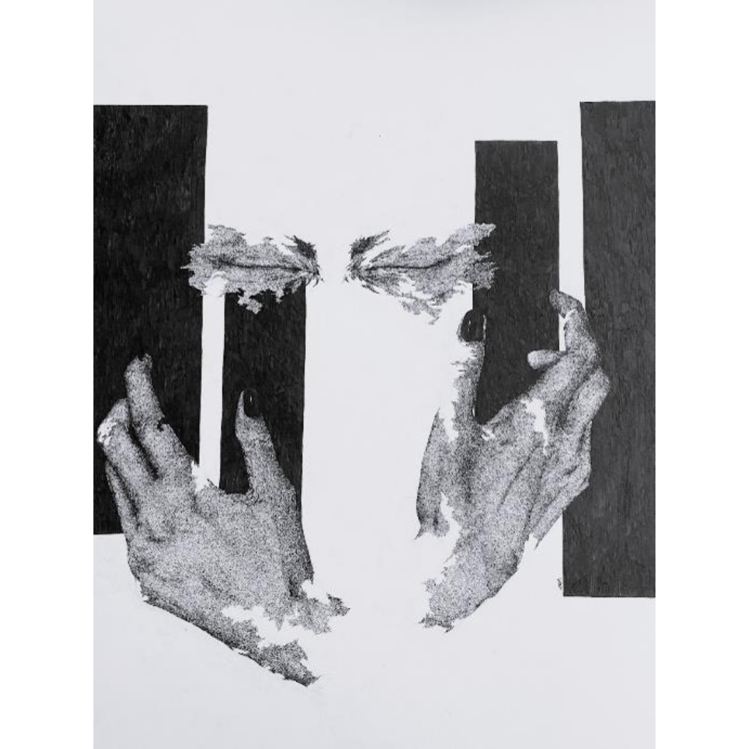 “Existing as a black woman has made me walk a space between love towards and fear of humanity. I navigate a world that both embraces and fears me.My work reflects not only this paradoxical relationship, but more broadly my fascination with the way we as humans treat each other and ourselves. I am focused on these narrow, hard-to-see spaces. The intensity of this focus is echoed in the way I create. I use fine-tipped pens and precise stippling techniques which allow me to highlight minute details and the way they work together. I want my work to require the same rigorous examination and patience it takes to connect with the world because this process, while oftentimes draining, can provide a catharsis that is more than worth the strain. In the same way you learn more about people and about us as humans by connecting and spending time with them, the more closely you examine my work, the more the details become clear.”