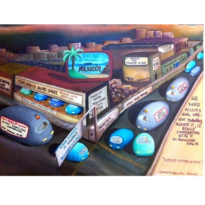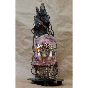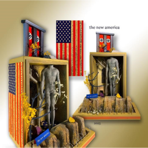 This mixed media sculpture presents a point of view about the current political state in America. It seems that current administrative politics are embracing values that appeared globally in the period prior to and during WWII. Does the old saying “Those who do not learn from History are doomed to repeat it” apply to America’s current state? My mixed media sculptures contain thought provoking images using found objects, original art and photography, wood, metal, paint and assorted objects. As a resident of North Phoenix I combine my love of the Sonoran Desert with my previous experiences in New York City and Washington DC.The artist as story teller who presents a strong cultural narrative is my objective and expression. My educational background is a Fine Arts degree from Rutgers University, and studies at Parsons School of Design and Fashion Institute of Technology.