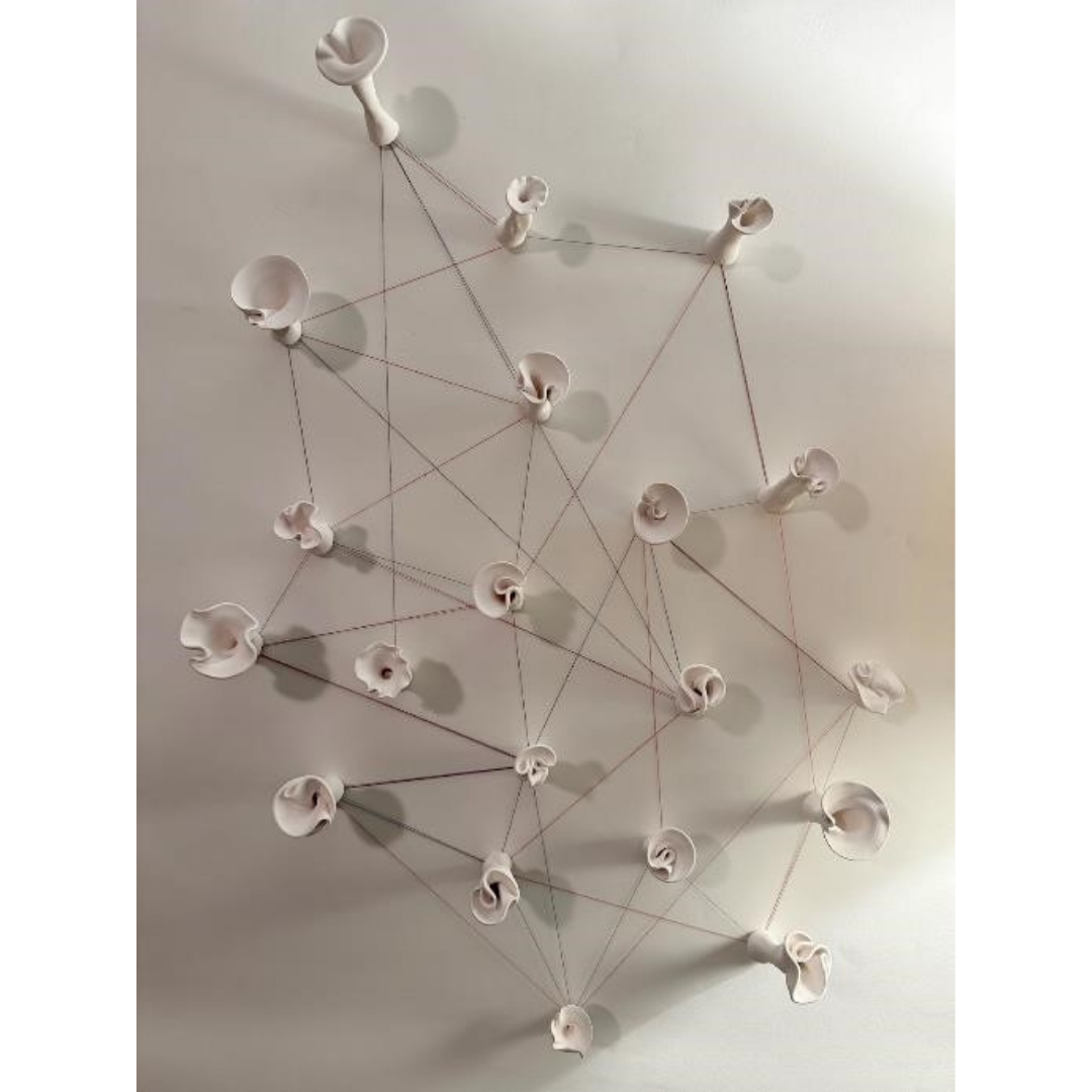 Baby Bud Quilt reflects my love for collecting/saving even the most mundane items, grids, and quilt patterns. It is also a commentary on and brings attention to women’s health, the freedom of choice, population control, and personal freedoms, which are all in question under our current political structure. “Heidi Dauphin is a mixed media/ceramic artist, born in 1970 in Grand Rapids, Michigan. Heidi earned a MFA in 2001 and BFA in 1992 from the University of Michigan. Heidi’s career started with teaching high school art in Michigan and followed by working as gallerist and curator in Massachusetts. Moving to Phoenix in 2004, Heidi focused on art making and has completed several large-scale Public Art Projects, including Valley Metro Light Rail, City of Phoenix, Avondale, and Tempe. She is also the Exhibitions Manager at Shemer Art Center.Between public art projects, Heidi concentrates on her studio practice. She is a collector of memories, objects, and places: all affecting her work. Throughout her career, she has completed three yearlong art projects (2000, 2010, 2020) that involved making art and collecting every day for a year. Heidi feels this ritual is essential to her art making process.