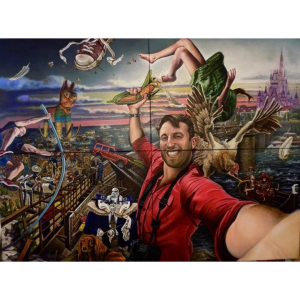 Diego Pérez (1987) is a Mexican artist focused on humor, irony, and traditional techniques. He started painting as a teenager and studied for his Bachelor’s degree in the Art School La Esmeralda, which was founded in 1927 by Diego Rivera, Frida Kahlo, and other Mexican artists. His artistic formation is based on traditional techniques and Mexican muralism. Pérez has completed many public art projects as an individual artist, mainly in Mexico City and Arizona.