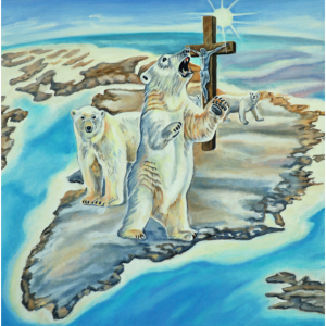 My pieces for this show are visual language to express the immigration to America and the push back against the repressive administration. In my work Land of MIlk and Honey I used gold leaf to represent the vision a migrant may have of the US. The red painted southern border is a reference to the cruel reception they may have when reaching there.The Light in the Darkness is the way I think of those who resisted authoritarians in Nazi Germany. Fanning the flames of a vision of how things should be and pushing back against Fascists is also needed in the current state of the US.