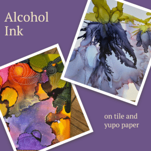 Alcohol Ink has become an annual tradition for our December Art Classes. This is a relaxed class exploring the spontaneity of alcohol ink on ceramic tiles, yupo paper, and other surfaces. $5.00 materials fee payable to the instructor on the day of the workshop