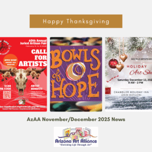 Be sure to sign up for a monthly newsletters to stay current in Arizona Art Alliance and their member arts organizations events and opportunities.