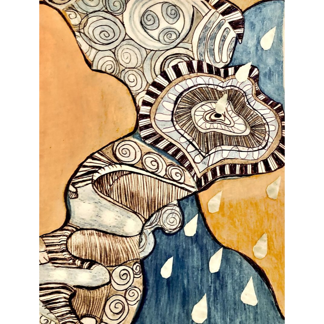 Colored pencil on drafting film, alcohol ink
