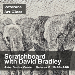 In this workshop, participants will expand on the lessons from the previous week and make their own scratchboard design working from photo references. Bring your own 8 x 10 photo or select from ours.