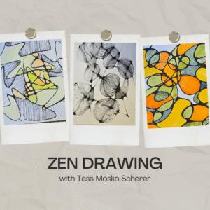 In this calming, creativity-boosting workshop, participants will explore Neurographic drawing—also known as “Zen Drawing.” This intuitive art process is designed to help you slip quickly into a state of flow, where the mind settles and the hand moves freely.